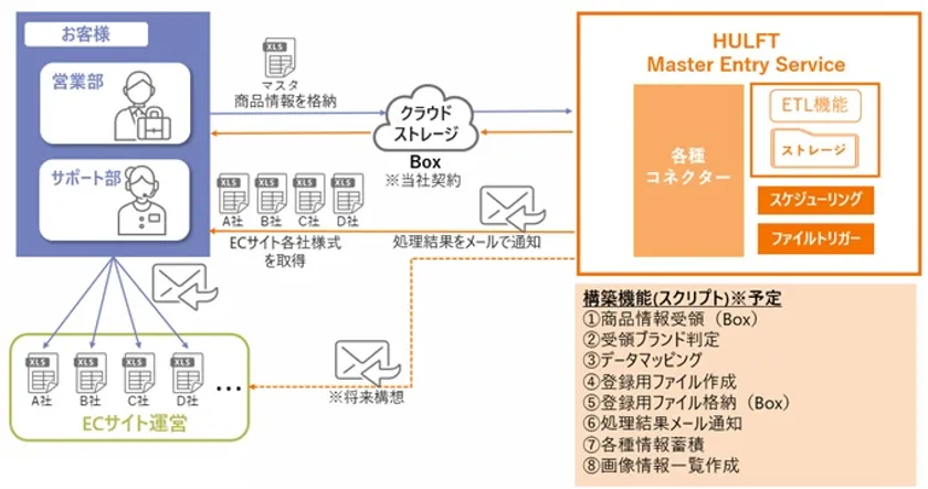 今後、HULFT Master Entry Serviceの機能拡充し、様々な業界・業種が運営する外部ECサイトと直接連携することで、お客様の一層の効率化、利便性の向上に寄与します。また化粧品以外の小売業、製造業、卸売業などでも利用することが可能で、マスターデータ連携が課題となっている業界・業種に対応するメニューを順次拡大していきます。
