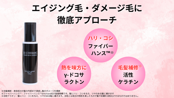 LE CHERANC ヘアミルクセラムは、年齢とともに変化する大人の髪に寄り添うアウトバストリートメントです。