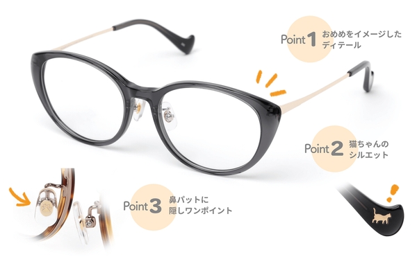 過去にメガネケースやメガネ拭き、くもり止めグッズなどのコラボ商品を展開してきましたが、今回2022年2月22日という特別な猫の日を迎えるにあたり、メガネフレームを発売することとなりました。
