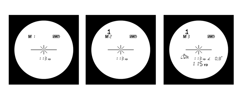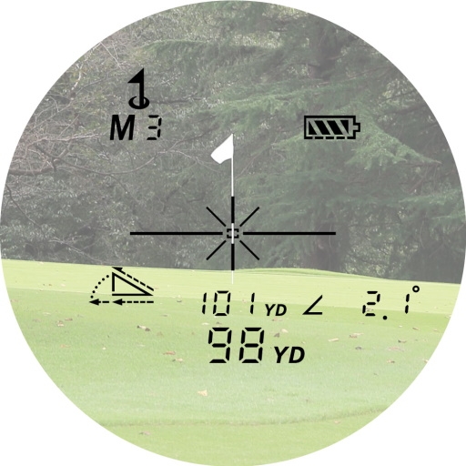 「スロープとピンシーク機能の両方が作動するモード(モード3/M3)」では、コースの傾斜に応じて打つべき距離を自動計算。モード3使用時はライトが消灯します。