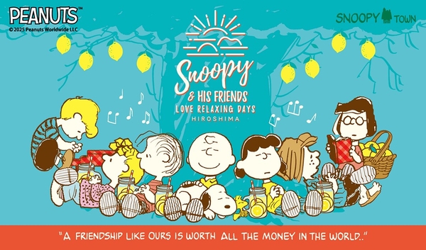 広島市内に移転し、装いも新たにオープンする『スヌーピータウンショップ広島パルコ店』は、ショップコンセプトを「SNOOPY&HIS FRIENDS~LOVE RELAXING DAYS~」 とし、海色やレモンクリーム色を背景に、スヌーピーとなかまたちがリラックスした幸せなシーンは心温まる空間を演出。