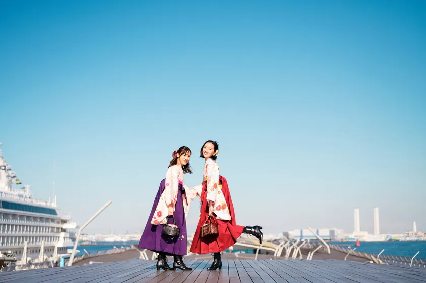 2日目は、ベイフロントの景色を望むレストランでゆったりと朝食ブッフェを。チェックアウト後、着付会場にてお好きな着物・袴・帯を選んで着付けを終えた後は、どこを切り取っても絵になる横浜の街並みとともに、思う存分記念撮影をお楽しみいただけます。横浜赤レンガ倉庫をはじめ、山下公園や山手西洋館など歴史的建造物が建ち並ぶレトロな街並みや横浜らしい景色が広がる運河沿いの散策など、思い思いの時間をお過ごしいただけます。