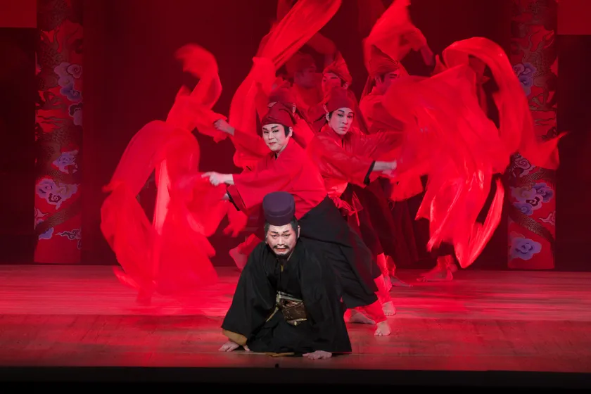 歌舞劇は、音楽と舞踊を中心にストーリーが展開する演劇で、オペラやミュージカルに似ています。また、歌舞劇や沖縄芝居などの大衆演劇は、客層が主に女性ということもあり、女性が主人公の作品や、女性が共感しやすいストーリーが多いことがあげられます。今回の「首里城物語」では、首里城の復興と併せて、組踊が誕生するまでのストーリーが描かれています。