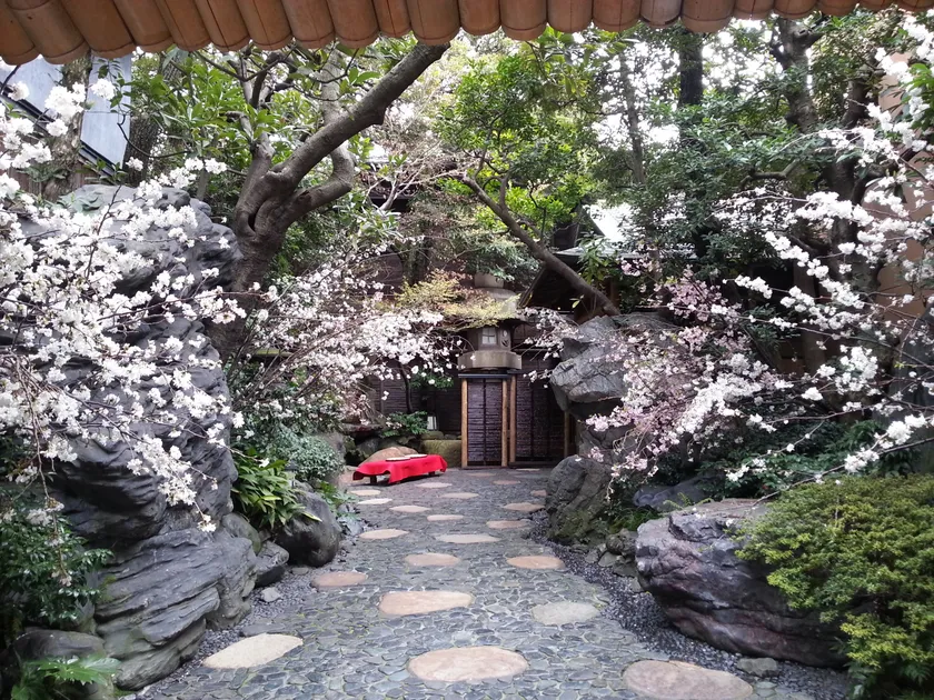 桜を庭園・館内に装飾してお客様をお迎えする個室会席