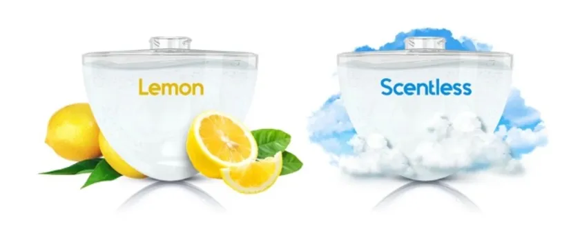 中身の芳香剤がなくなったらカートリッジを交換します。やり方はカバーを取って、空のリフィルと入れ替えるだけ。10秒程度で簡単にできます。1度交換すると約230回の使用ができます。材料は一般的な芳香剤と同様、水に溶け分解できる成分でできています。