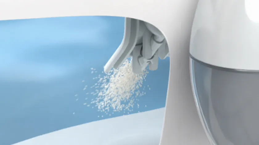 便座に座るとボタンが押され、水面に芳香剤が自動でスプレーされます。水面にバリアを形成し、臭いを封じ込めると同時に部屋をフレッシュな香りにします。