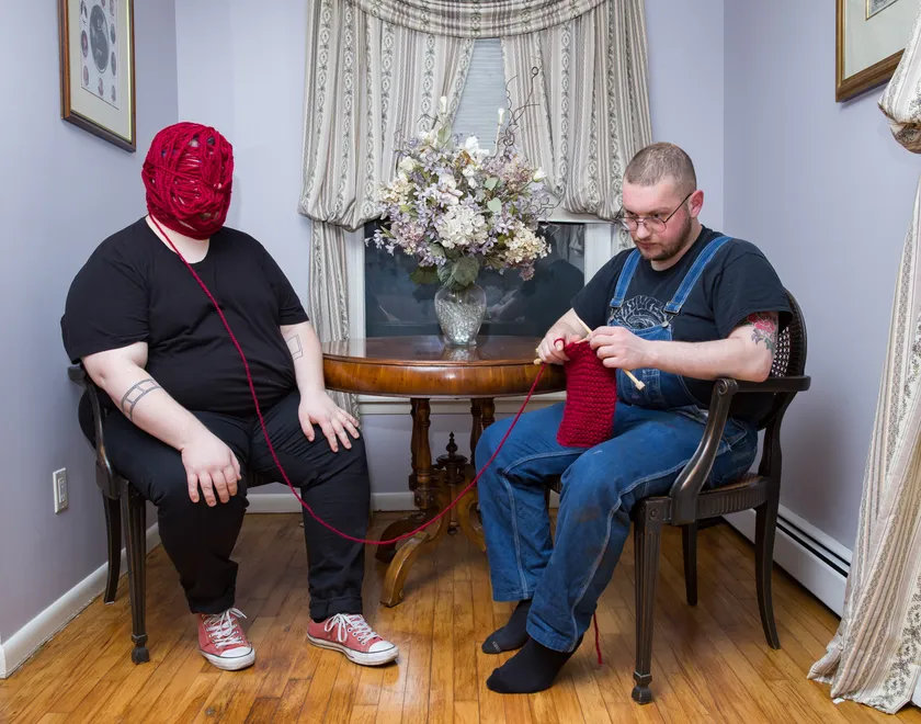 「ぼくの心の裡にはいつもゲイと肉体の葛藤がある」と語るエグナー。不条理、ユーモア、不気味さなどを写真に捉えることが、自身のアイデンティティの揺らぎを切り抜けるツールとなり、作品の個性ともなっています。
