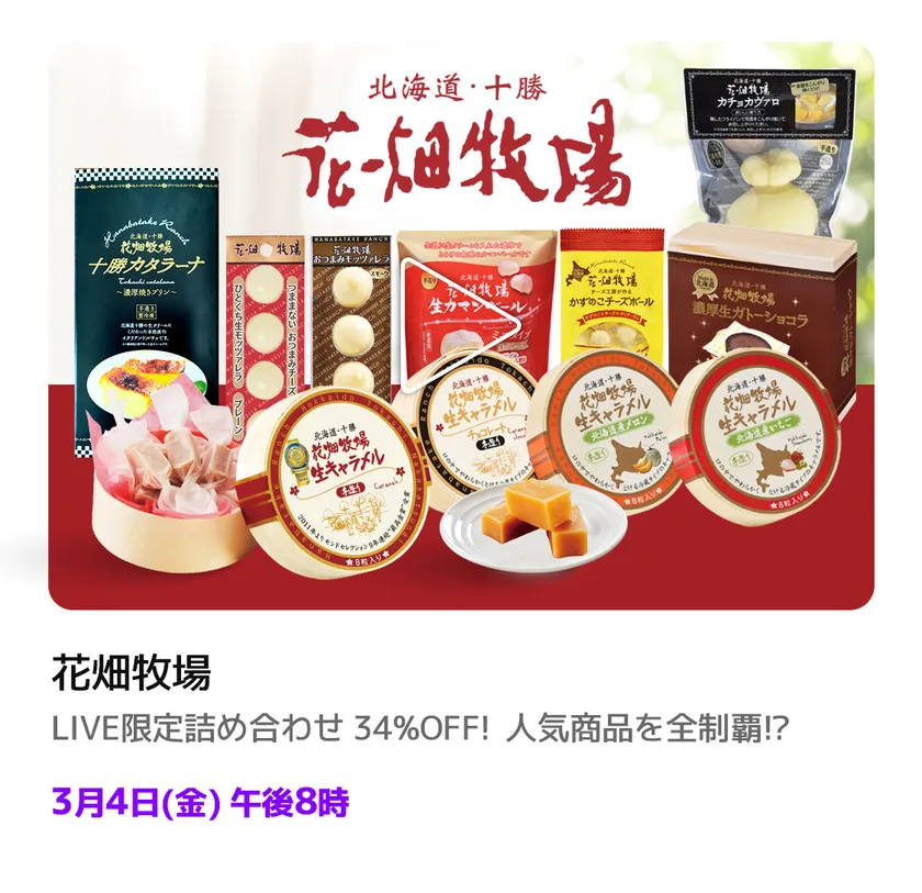 2月26日(土)はメガ割ランキングでは常に上位の韓国コスメブランド「VT COSMETICS」、3月1日(火)は着圧ケア商品を取り揃えるフットケアブランドの「メディキュット」、3月4日(金)は生キャラメルが大人気の花畑牧場が登場します。「VT COSMETICS」の回のゲストには、人気K-popアイドルグループ「PENTAGON」のメンバーのユウトさんが出演し、視聴者と一緒にライブショッピングを盛り上げます。