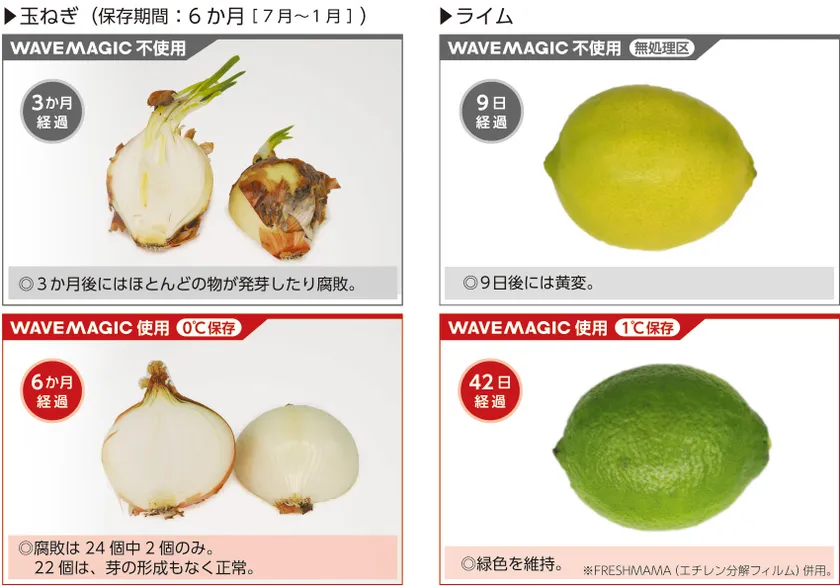 このような、生産現場・輸送・店頭で発生するロスを削減できる画期的な鮮度維持装置が、今回発売を開始する「WAVEMAGIC」です。