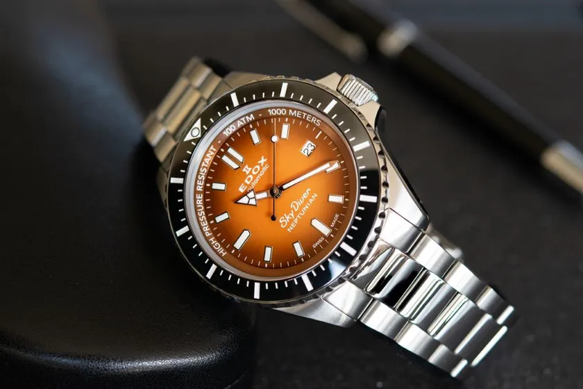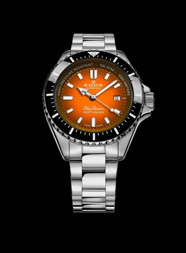 そしてこの度、世界のエドックスで展開されている「スカイダイバー ネプチュニアン オートマティック」のオレンジダイアルの時計を、特別に日本のオンラインストアでも2022年2月25日(金)より販売開始します。