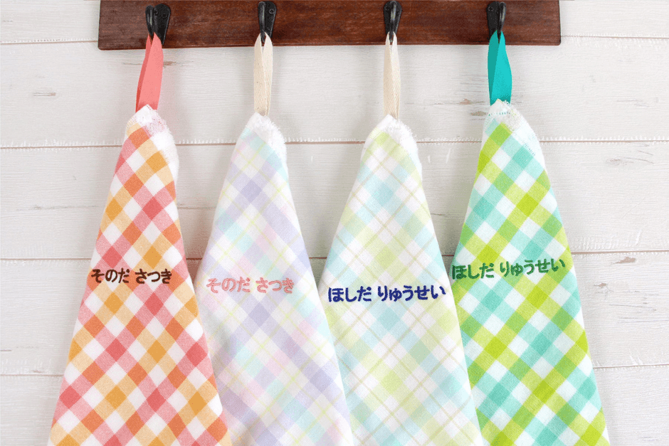 保育園・幼稚園に通うお子さまが使用するお手拭きタオルは、外遊び後や食事前後など良い生活習慣を身につけるために毎日使用されます。毎日洗っていると名前が消えやすく、お名前が小さいと他のお友達の荷物に混ざったり…といろいろなトラブルも起こりがちです。