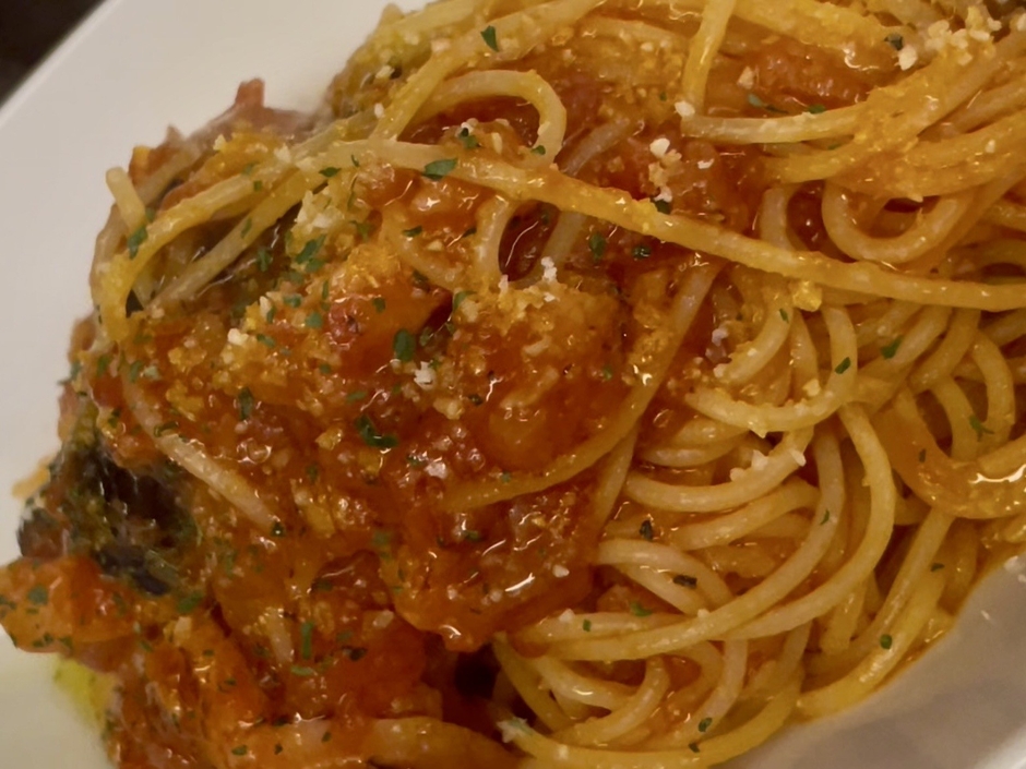 ※本日の例:トマトとベーコン、茄子のスパゲティーニ