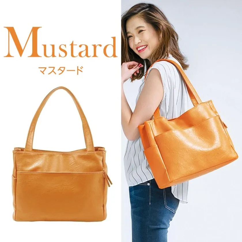 バッグ内外に計10個のポケットが付いた収納力抜群のトートバッグ。内側は、バッグの中で迷子になりがちな小物をすっきり整理整頓できる5個のポケット付き。外側の前後左右は、出し入れがスムーズな絶妙な大きさのポケット付きです。A4サイズもすっぽり入る大きさと、雨の日でも安心の合皮素材は軽くて柔らかく、通勤・通学にもぴったりです。豊富な11色展開なので、コーデに合わせて色違いで揃えてみても。