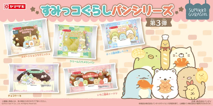 株式会社バンダイ キャンディ事業部は山崎製パン株式会社との共同企画として、サンエックス株式会社が著作権を保有する「すみっコぐらし」のパンを企画し、2022年3月1日より全国のパン売り場(沖縄を除く)にて販売します。