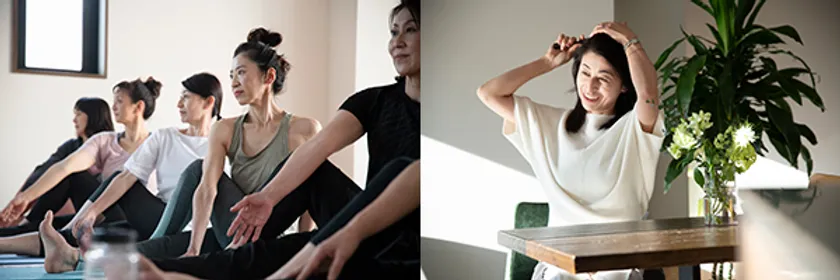 おしゃれや美容、ボディメイクへの関心が高いのも、今のアラフィフ世代の特徴です。定番のスキンケアはもちろん、アンチエイジングのためのヘッドマッサージや美容フードのほか、仲間たちと取り組むヨガやストレッチシーンも抑えました。
