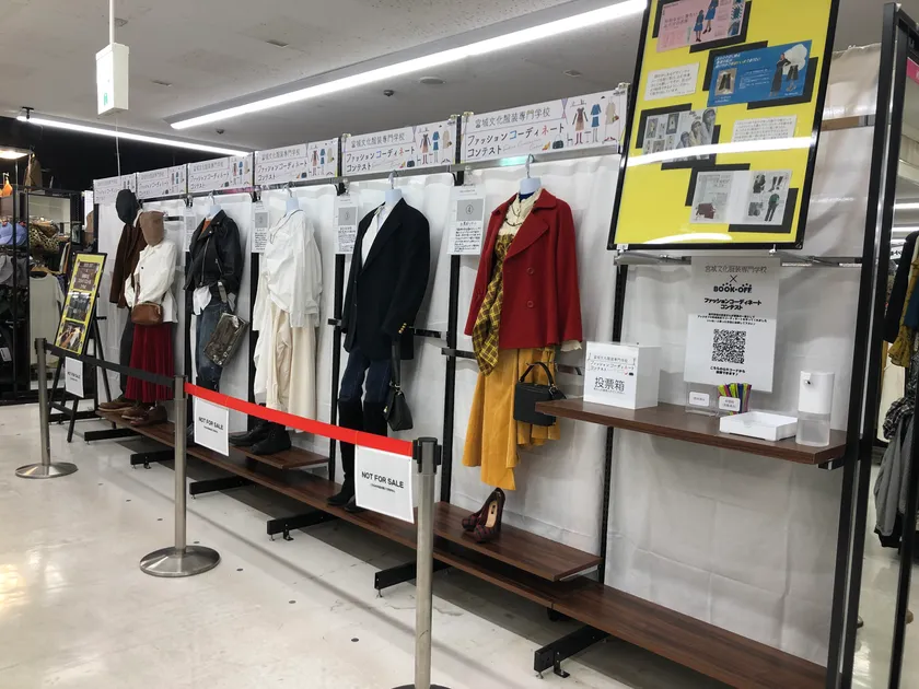 ブックオフと宮城文化服装専門学校は、2021年6月に地域一体となり、物の循環の体現、関わる人の成長を目指すことを目的に、様々な分野における連携、人的資源の交流や物的資源の相互活用を積極的に行い、より広い視野で地域振興等に関する意見交換を進め、2021年11月には、ブックオフスーパーバザーイオン仙台店でリユース衣料を利用したファッションコーディネートコンテストを実施いたしました。