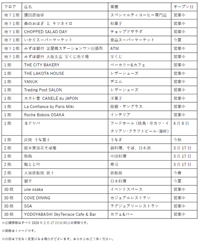 中央日本土地建物株式会社(千代田区霞が関一丁目 代表取締役社長 三宅 潔)と京阪ホールディングス株式会社(大阪市中央区大手前一丁目 代表取締役社長 平川 良浩)は、株式会社みずほ銀行(千代田区大手町一丁目 取締役頭取 加藤 勝彦)と共同で開発した複合施設「淀屋橋ステーションワン」の商業ゾーンにおいて、待望のレストランフロアをはじめ、新業態や京阪沿線初出店を含む飲食・食物販8店舗が3月17日(火)より秋にかけて順次オープンすることを決定しましたのでお知らせします。本リリース記載の8店舗のオープンをもって、段階的に開業してまいりました全24店舗が出揃います。様々なジャンルのレストランやカフェ、スーパーマーケット等が揃うことで、「食」を中心とした多彩な楽しみ方ができる施設へと進化します。なお、商業ゾーンの運営会社は株式会社京阪流通システムズ(大阪市中央区天満橋京町1番1号 代表取締役社長 松下 靖)です。
