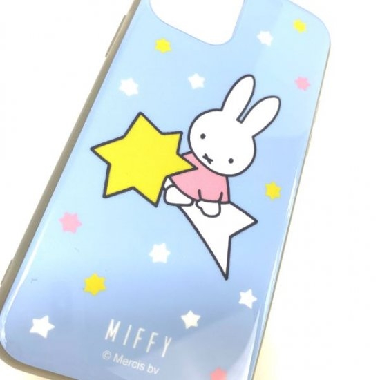 パステルカラーの優しい色合いが特徴のミッフィーデザイン。淡いブルーを基調としているから大人も持ちやすい♪金平糖のような星が周りにキラキラきらめいています。ケースを付けたまま充電が可能、ストラップホール付きでストラップも取り付けられますよ♪