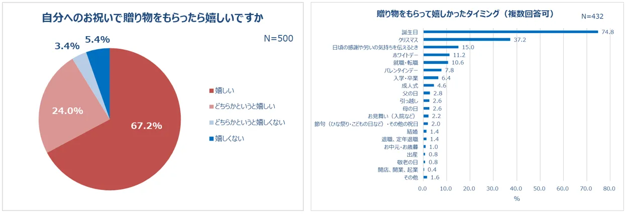 4.9割以上が贈り物をもらうと「嬉しい」。嬉しいタイミングは「誕生日」「日頃の感謝・労いを伝えるとき」