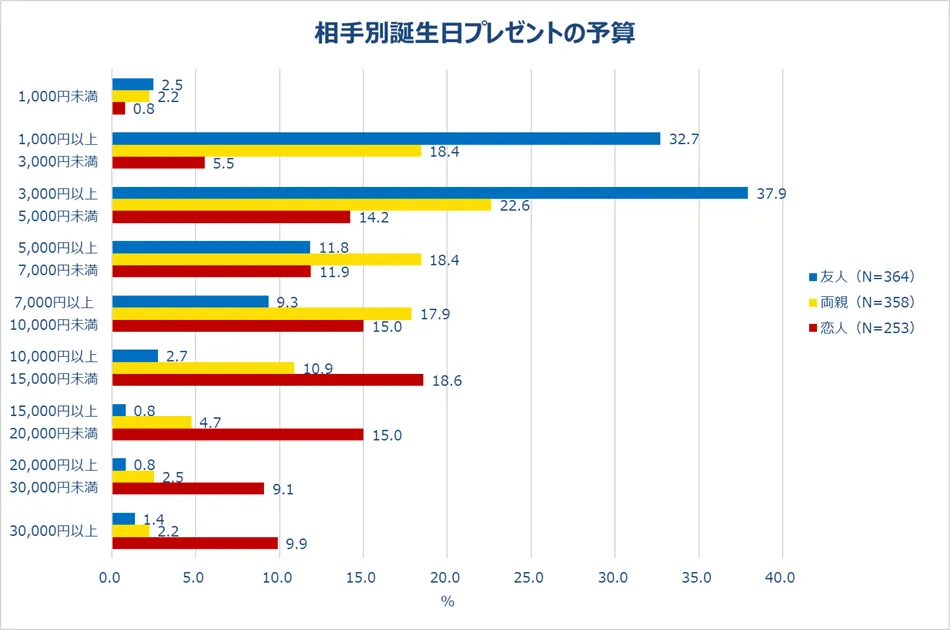 友人・両親への誕生日プレゼントの予算は「3,000円以上5,000円未満」が最多。