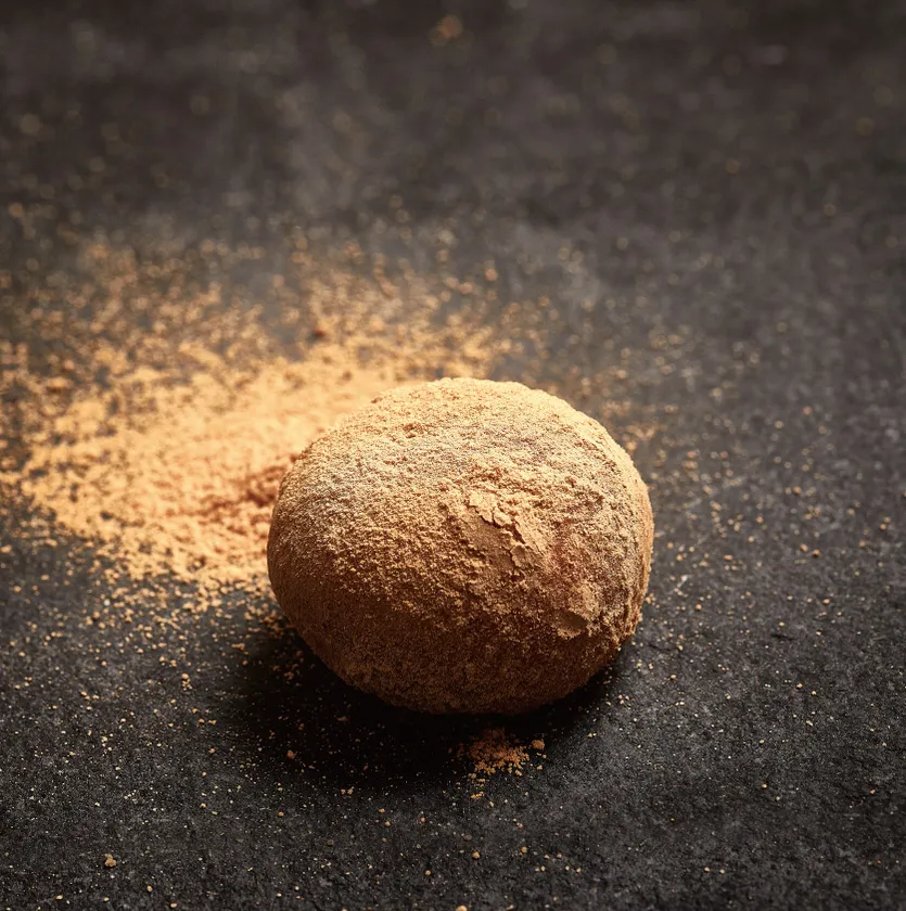 丸ぁるいきなこ味の揚げパンの中身は自家製スイートポテト。懐かしさと新しさの絶妙な味。