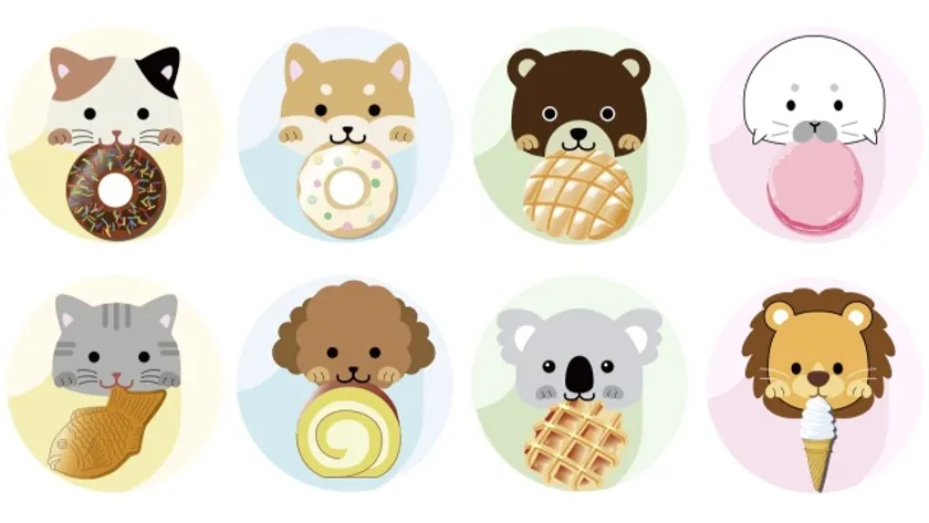 今回発売するデザインは2種類(ツートーン/かぶりつき)です。ツートーンシリーズは、おしゃれなパステルカラーと大人に人気のニュアンスカラーを用意しています。かぶりつきシリーズでは、本を閉じているときは動物たちが本の淵から顔を出し、本を開くとスイーツにかぶりついています。