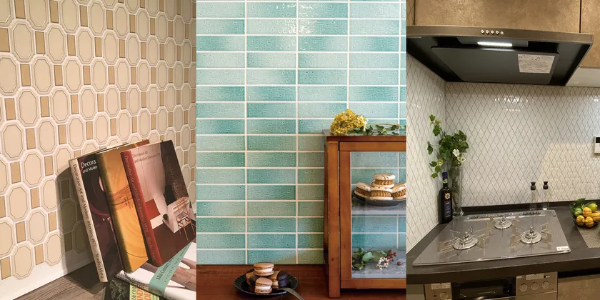 カーブとストレート、異なる形を組み合わせたアンティーク風タイル