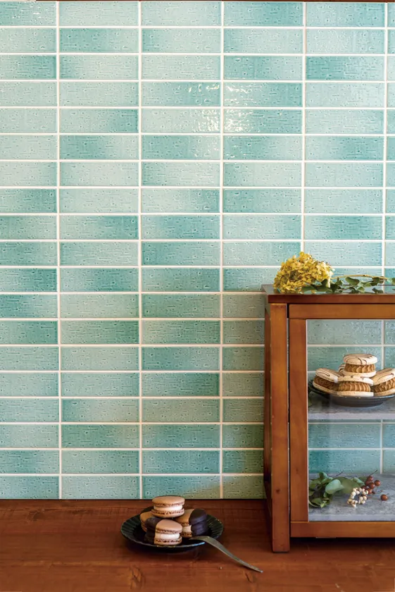 面状の凹凸を活かし、ハンドメイドの質感を演出したタイル。