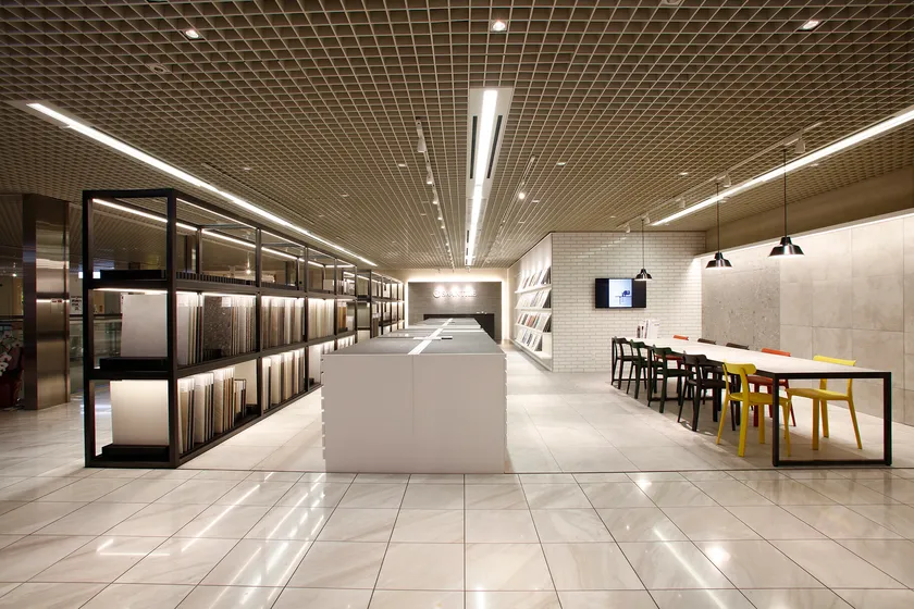 リビングデザインセンターOZONEの7Fにある「SWANTILE東京ショールーム」では、外装・内装の壁・床用のタイルの全ラインナップを現物にてご覧いただけます。住宅から店舗向けまで幅広く対応しているほか、タイル業界初のVR体験等の新しい機能を持たせた展示スタイルなど、タイルをお探しの方の為のソリューションの場となっております。