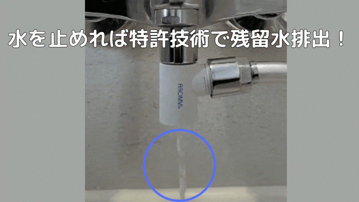 1) 特許の技術でシャワーホース内の不要な残留水のみを自動排出!