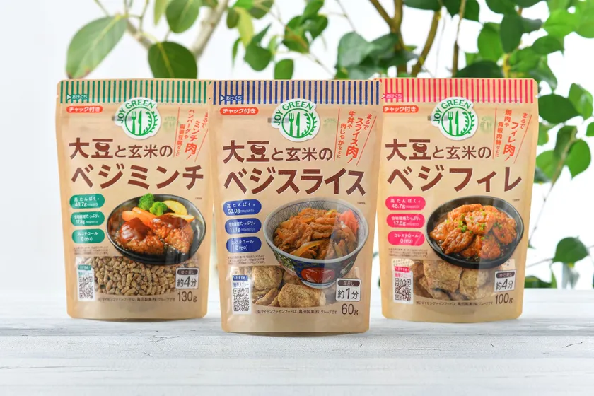 このたび、株式会社マイセンファインフード(本社:福井県鯖江市、代表取締役社長:村井 龍昭)は、既存の大豆ミート事業をフルリニューアル、新ブランド『JOY GREEN』シリーズとして始動いたします。2022年4月より、「大豆と玄米のベジスライス」を新たに発売するととともに、「大豆と玄米のべジミンチ」、「大豆と玄米のベジフィレ」をリニューアルし、計3品を展開してまいります。