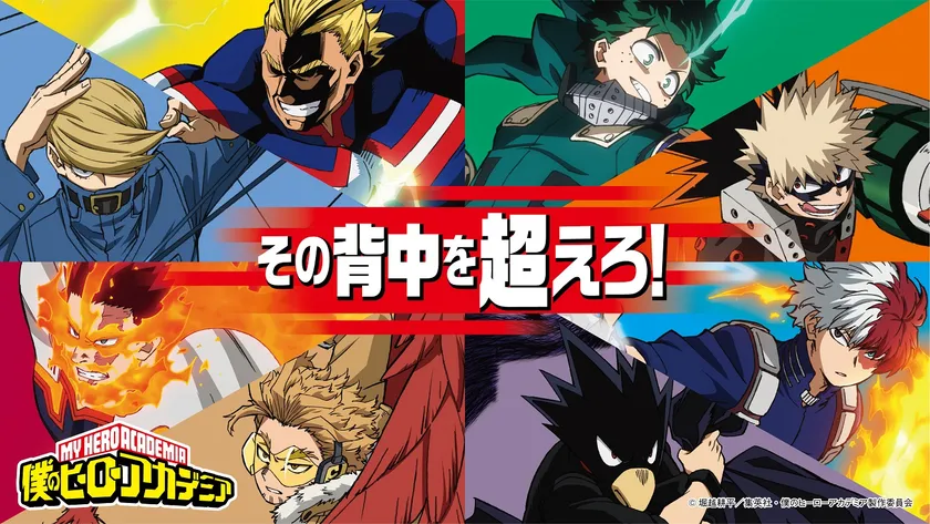 「僕のヒーローアカデミア」新規描き下ろしイラスト商品が登場! 『その背中を超えろ!』をテーマに雄英生が プロヒーローの背中を超えようと努力する姿を描く!