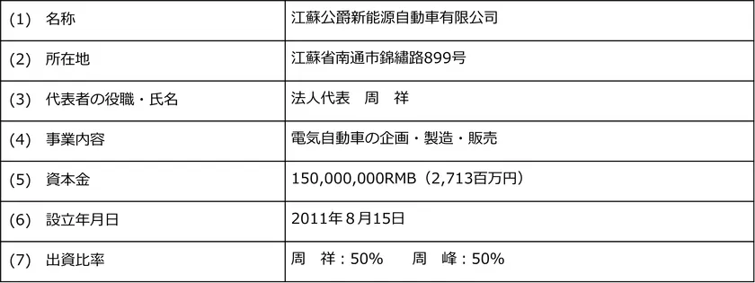 江蘇デューク社は、設立してから10年を超える中国のEVメーカーであり、現在までに中国、インドネシア等の各国において5車種以上の開発・製造・販売実績があるほか、15分の充電で600キロ走行できる急速充電・蓄電技術等も有しております。それに加え、中国だけではなく、インドネシア等にも独自の販売ネットワークを有しております。