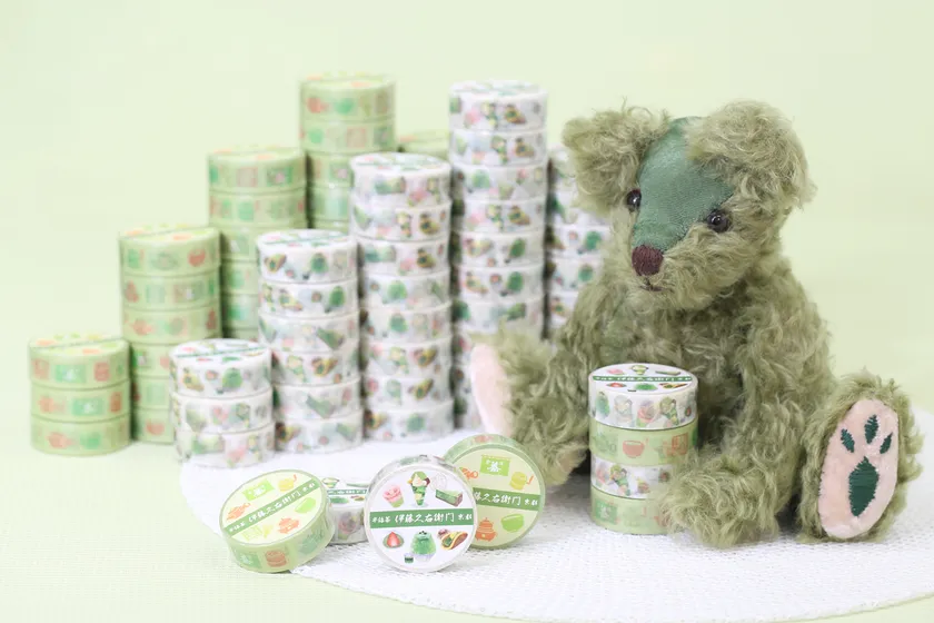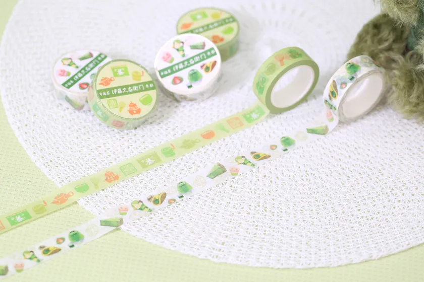 伊藤久右衛門からオリジナルマスキングテープ2種が登場!白色をベースにした『マスキングテープ 宇治抹茶スイーツ』は、当店自慢の宇治抹茶スイーツ6種(宇治抹茶パフェ・いちご抹茶だいふく・栗入り抹茶生どらやき・宇治抹茶さくらパンナコッタ・宇治抹茶チーズケーキ ゆめみどり・宇治抹茶だいふく氷)をモチーフにしました。華やかになるよう、色彩に富んだ宇治抹茶スイーツを盛り込んでいます。薄緑をベースにした『マスキングテープ 宇治のお茶屋』は、お茶屋を象徴するのれんや急須などを「レトロかわいい」デザインに仕上げました。オンラインショップでは販売せず、京都の実店舗のみで販売いたします。