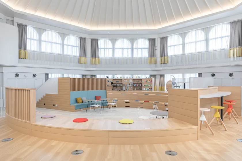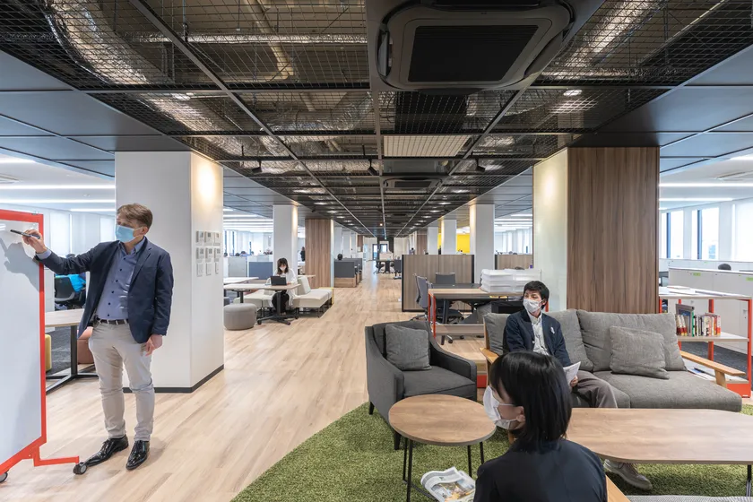 「I-PEXキャンパス」本館は、歴史ある大学キャンパス※を「KNOT(むすぶ)」をコンセプトとしてリノベーションし、2020年6月に開設しました。時間と場所を自由に選択できる働き方であるABW(Activity Based Working)の活用や、ペーパーレスを起点としたDX(Digital Transformation)を推進するとともに、社内外のコミュニケーションを活性化させる場を設置することで、働く人の感性を刺激し、当社従業員が「ここで働きたい」と思える空間を創り出すことを目指しました。歴史ある教育施設の「今と昔」を結び、社内外の垣根を超えた「人と人」を結ぶことで、大学キャンパスがアイデアや閃きが生まれる現代の働き方に即した、“最・尖端”なオフィスへと生まれ変わりました。
