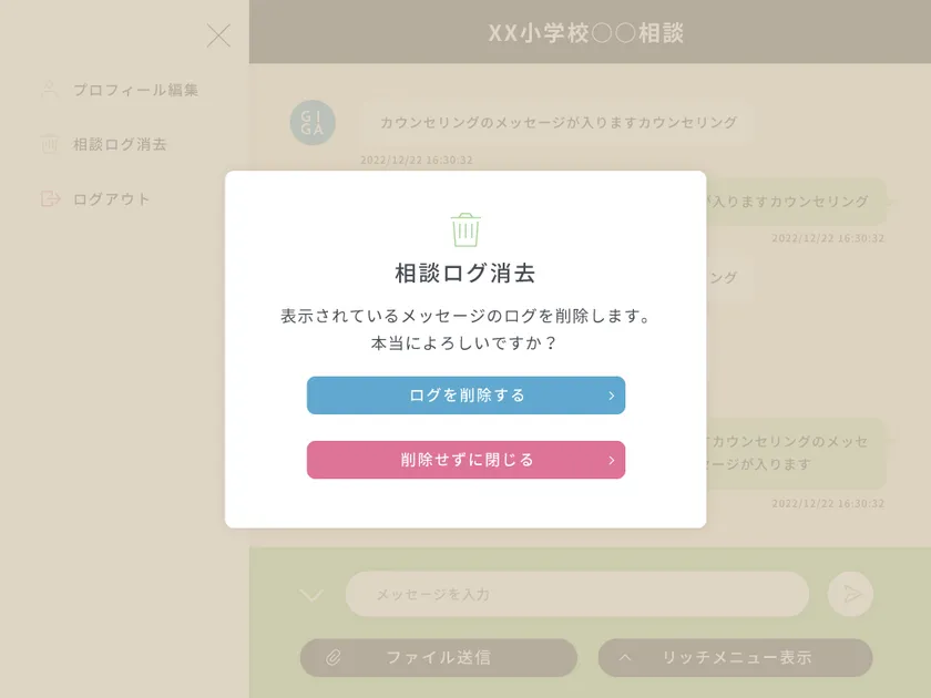 相談のログを相談者自身が削除できます