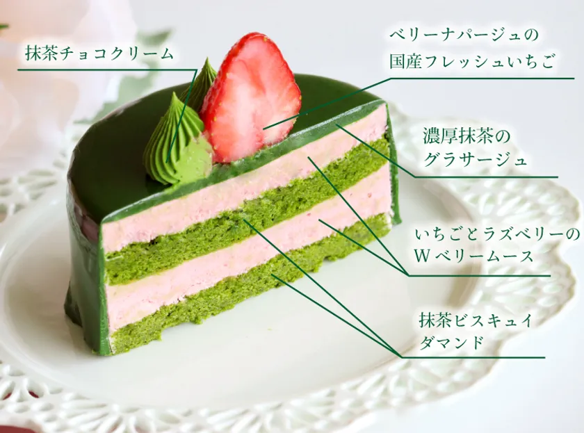濃厚抹茶といちごの萌え断ケーキ 「春のいちご抹茶ムースケーキ」のお取り寄せ販売を3/3より開始