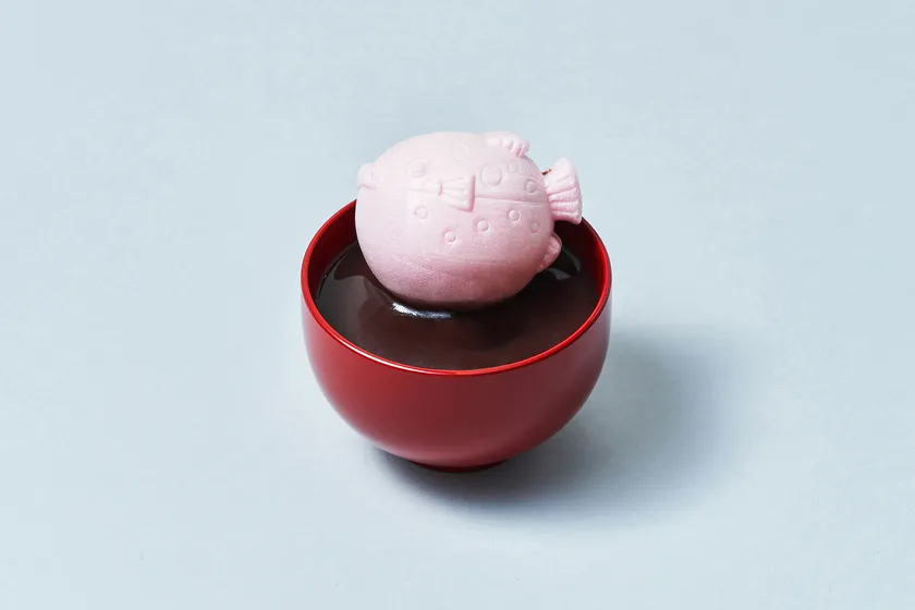 春らしいピンク色に染まったふぐ型の最中には、和三盆を使用した上質なさらし餡がたっぷり。「ふぐ=福」にちなんだ縁起のいい商品は、新年度のご挨拶としても喜ばれます。