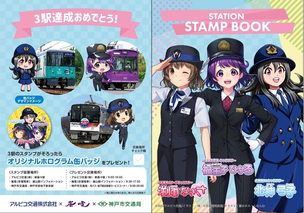 〇オリジナルコラボスタンプ帳で3社の駅(新島々駅・神戸市営地下鉄各駅・嵐山駅)を巡るスタンプラリー 〇スタンプを3つ集めた方には、オリジナルホログラム缶バッジをプレゼント