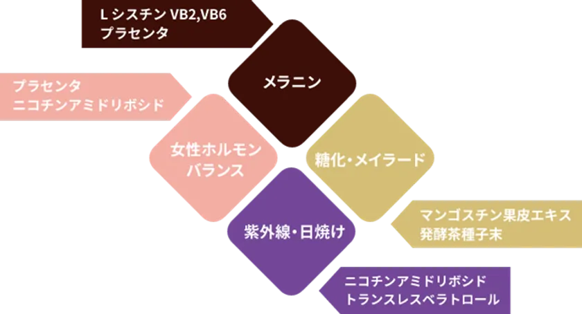 特徴 : 美白に4つのアプローチを行い、