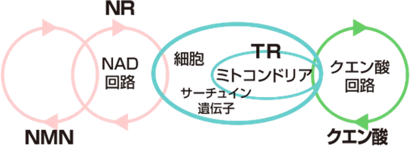 遺伝子保護を行うNAD回路と、エネルギー代謝を行うTCA回路(クエン酸回路)の2つのサイクルをケアするダブル処方で、毎日の健康維持のサポートを行います。
