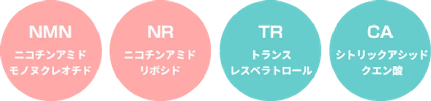 老化原因となる遺伝子損傷からの保護を行う細胞内のNAD+を増加させるNAD+前駆体のNRと、細胞内ミトコンドリアのケアを行う抗酸化成分のTRを中心に配合した、総合エイジングケアサプリメントです。