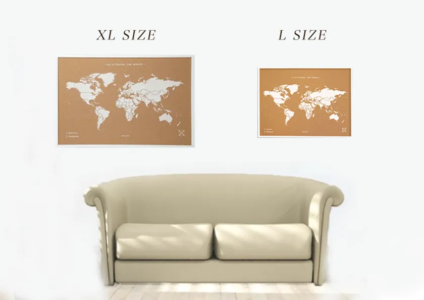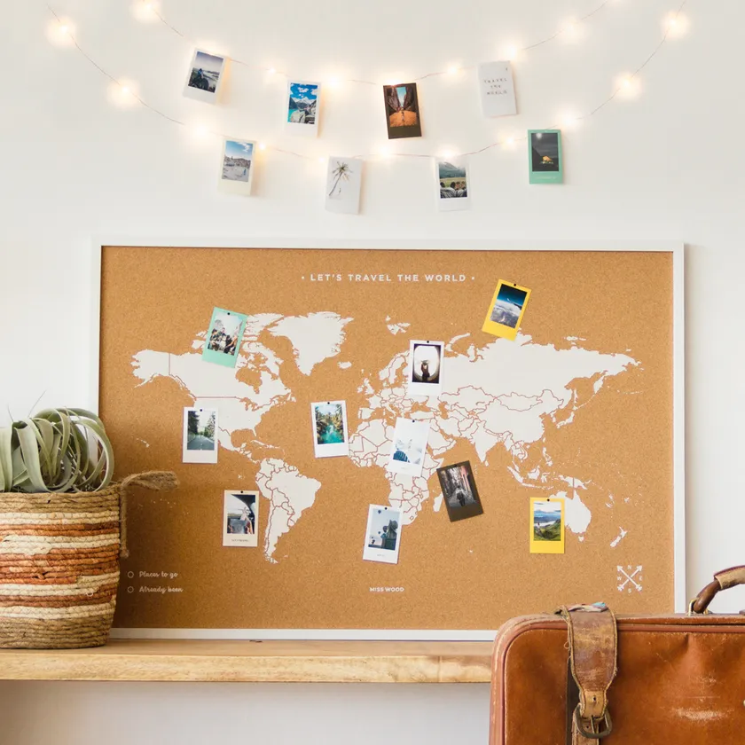 旅の思い出に写真はたくさん撮るけど、後で見返すことってあまりないもの。【コルクマップ】は一般のコルクボードと同様にピン留めが可能です。旅先で撮った写真や航空チケット、絵はがきなどをピン留めすれば、もうオリジナルの思い出マップの出来上がり。旅の記憶が素敵なインテリアとして毎日眺めて楽しめます。
