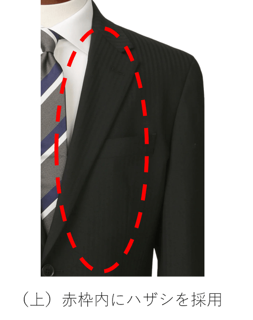 ※1:ハザシとは:表地と芯地をを馴染ませる八の字に縫っていく縫製方法