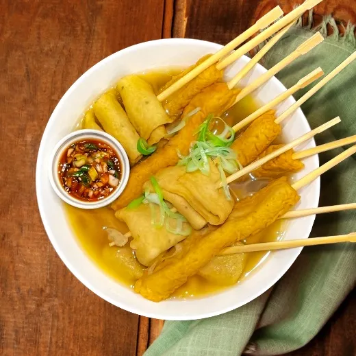 韓国ドラマでもおなじみの韓国屋台定番メニュー。 魚介の練り物を揚げた「オムク」を薄味のスープで煮た料理。食べ歩きにも最適で温まるメニューです。