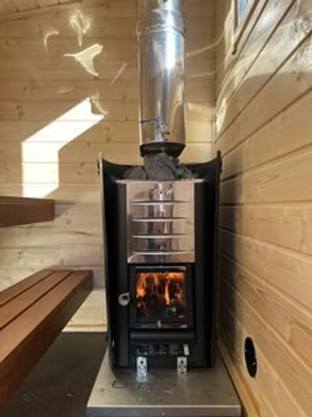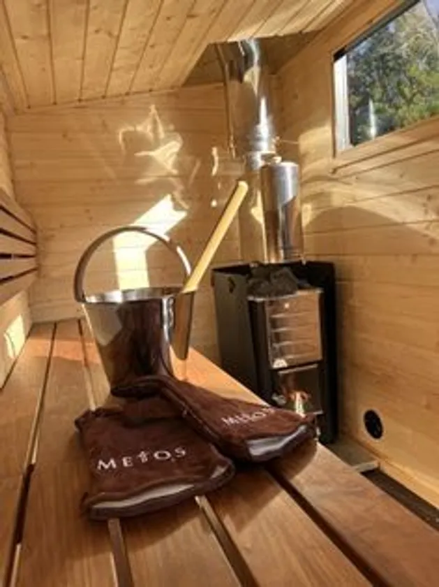 フィンランド式のサウナをプライベートで楽しむことができる。サウナ内に薪ストーブがあり、熱したサウナストーンへお湯やアロマをかけ、「ロウリュ」で楽しむことができる。「ととのう」際は、サウナから上がって汗だくで火照った体を自然の解放感の中でクールダウンできることもアウトドアサウナの魅力だ。