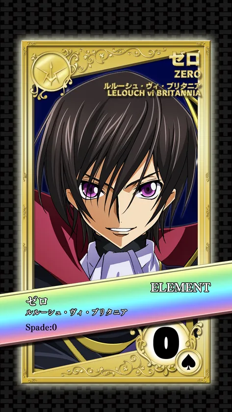 』本作は、大人気アニメ『コードギアス 反逆のルルーシュ』のキャラクターたちのトランプをモチーフにした、カードゲームを楽しめる新作ゲームです。