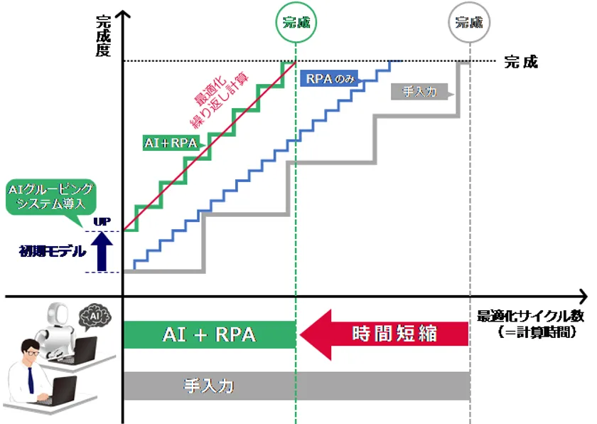 (注1)AIグルーピングシステムとRPAシステムを併用した場合の計算時間