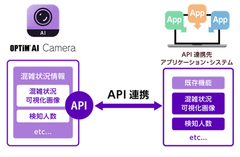 「OPTiM AI Camera」で解析した混雑状況情報は、APIを介して、公式案内サイト「NERIなび」に提供いたします。これにより、「NERIなび」の地図上に混雑状況を表示することが可能になります。