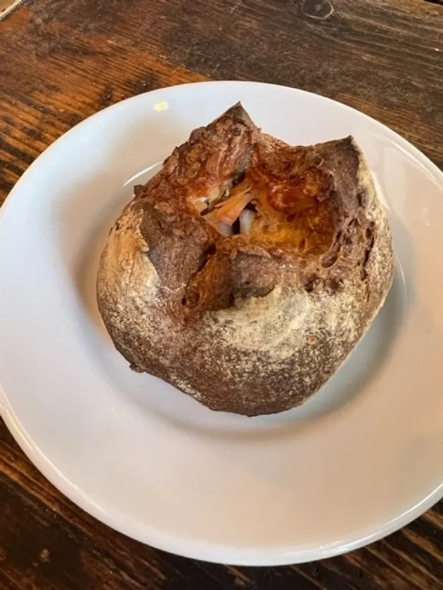 金沢の中心部にある知る人ぞ知る人気ベーカリー。大正時代の鉄工所をリノベーションした店舗には、朝からパンを買い求める行列ができるほど。首都圏からの来店も多い。今回は人気のクリームパン、カヌレに加え加賀野菜の小坂蓮根とチキンのパンなどをご紹介。